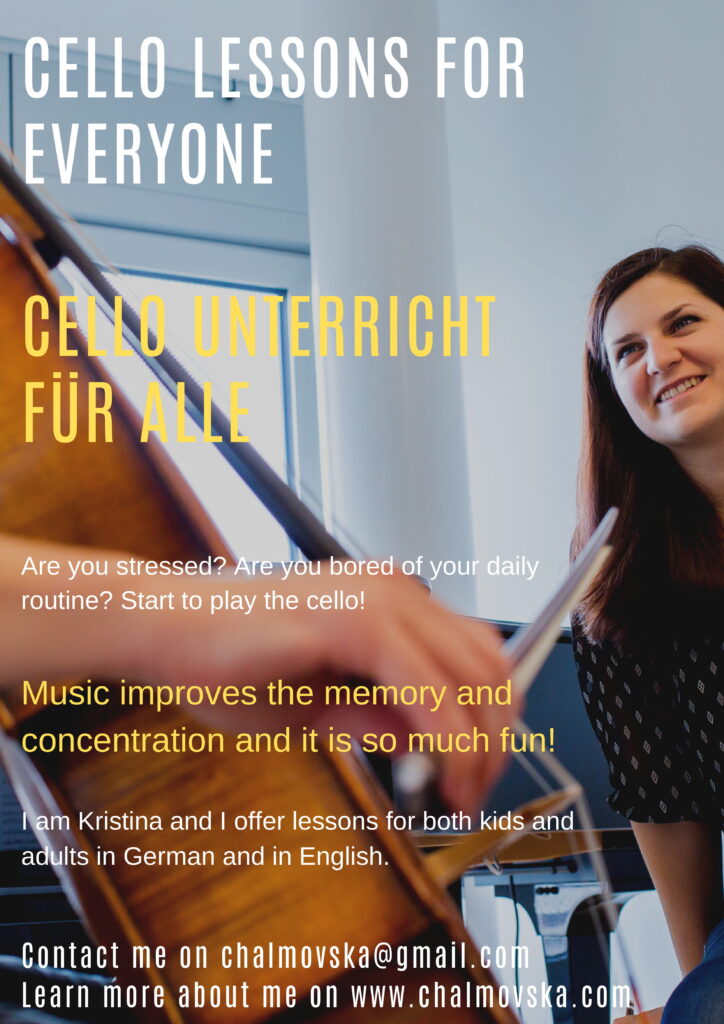 I’ve had the pleasure of being one of Kristina’s students for the last few months. I am a complete beginner with the cello, and she is very patient and innovative in finding ways of getting me past obstacles. Definite recommend!